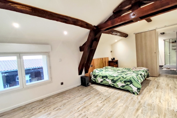 Descriptif: Bien d'exception ! Corps de ferme entièrement rénové dans un environnement calme et privilégié offrant 160m2 habitables sur 1,5 hectares de terrain avec de nombreuses dépendances, entièrement clôturé et une vue panoramique sur les Monts du Forez. Au rez-de-chaussée : cuisine américaine équipée, salon, séjour lumineux, salle d'eau, WC, cellier poêle à bois et chambre en mezzanine avec WC. A l'étage : 2 chambres dont une suite parentale avec WC. Toiture refaite, électricité et plomberie refait à neuf, façade rénovée, portail électrique, visiophone. Atelier écurie, bergerie, poulailler et une pièce aménagée de 50m2 esprit "saloon" (réception, salle de loisirs…). Piscine semi-enterrée. Panneaux photovoltaïques, réservoir d'eau permettant une quasi autonomie. DPE classe D et GES classe B. Prix de vente : 379 000€. Honoraires à la charge du vendeur. Pour organiser une visite, contactez moi : David VACHERON O6.40.95.70.25.